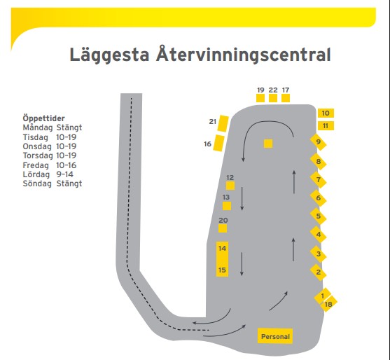 Vi föreslår att kommunen utreder och inför ÅVC Anytime vid återvinningscentralen i Läggesta. Detta skulle ge invånarna möjlighet att lämna avfall när det passar dem, även kvällar och helger.